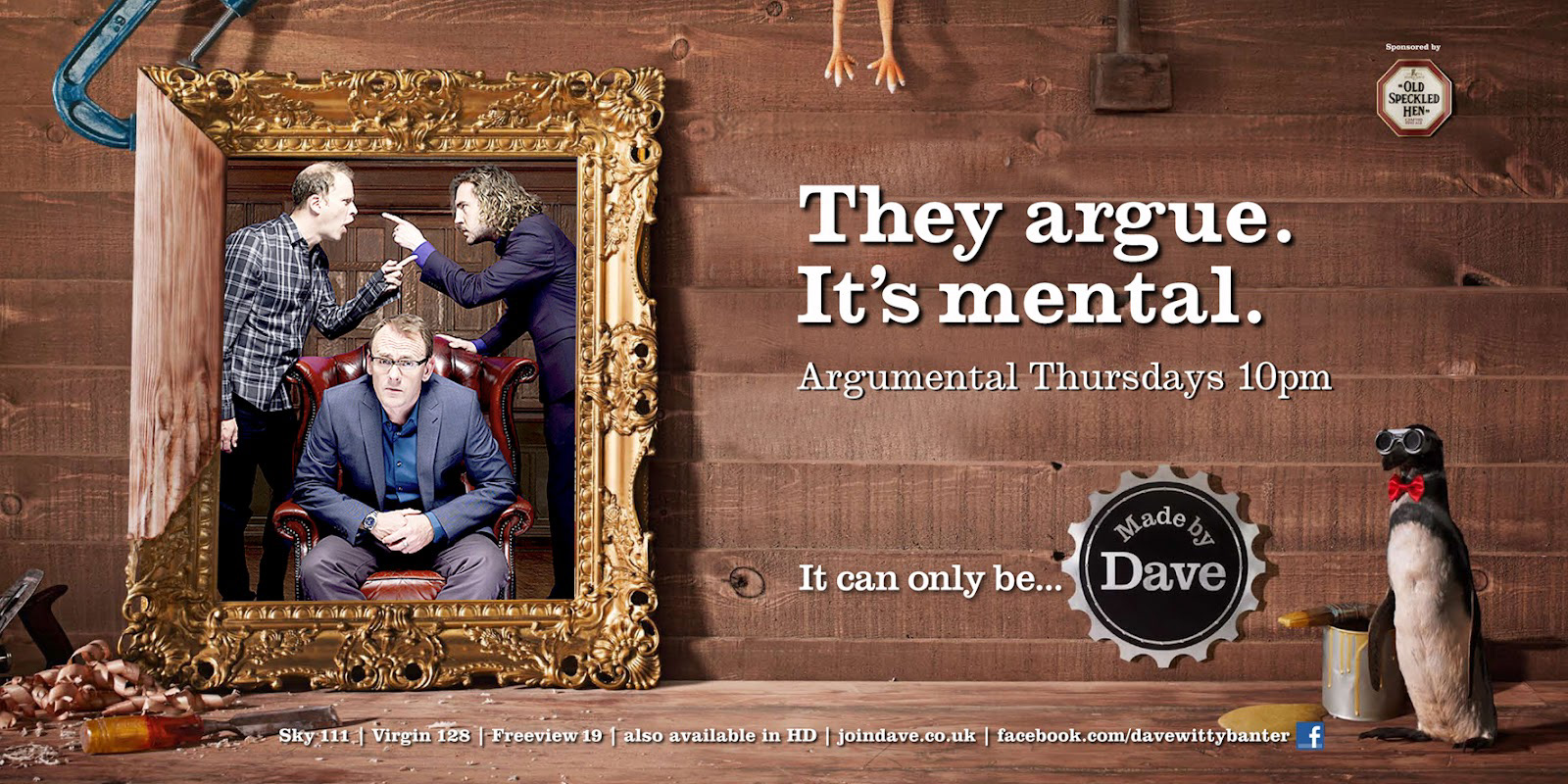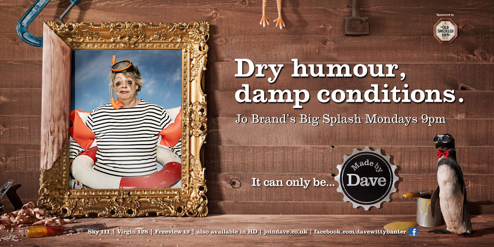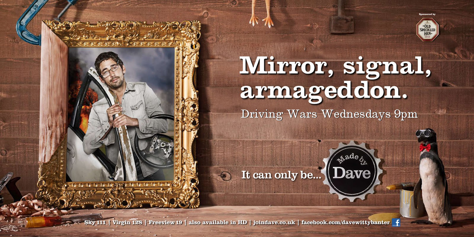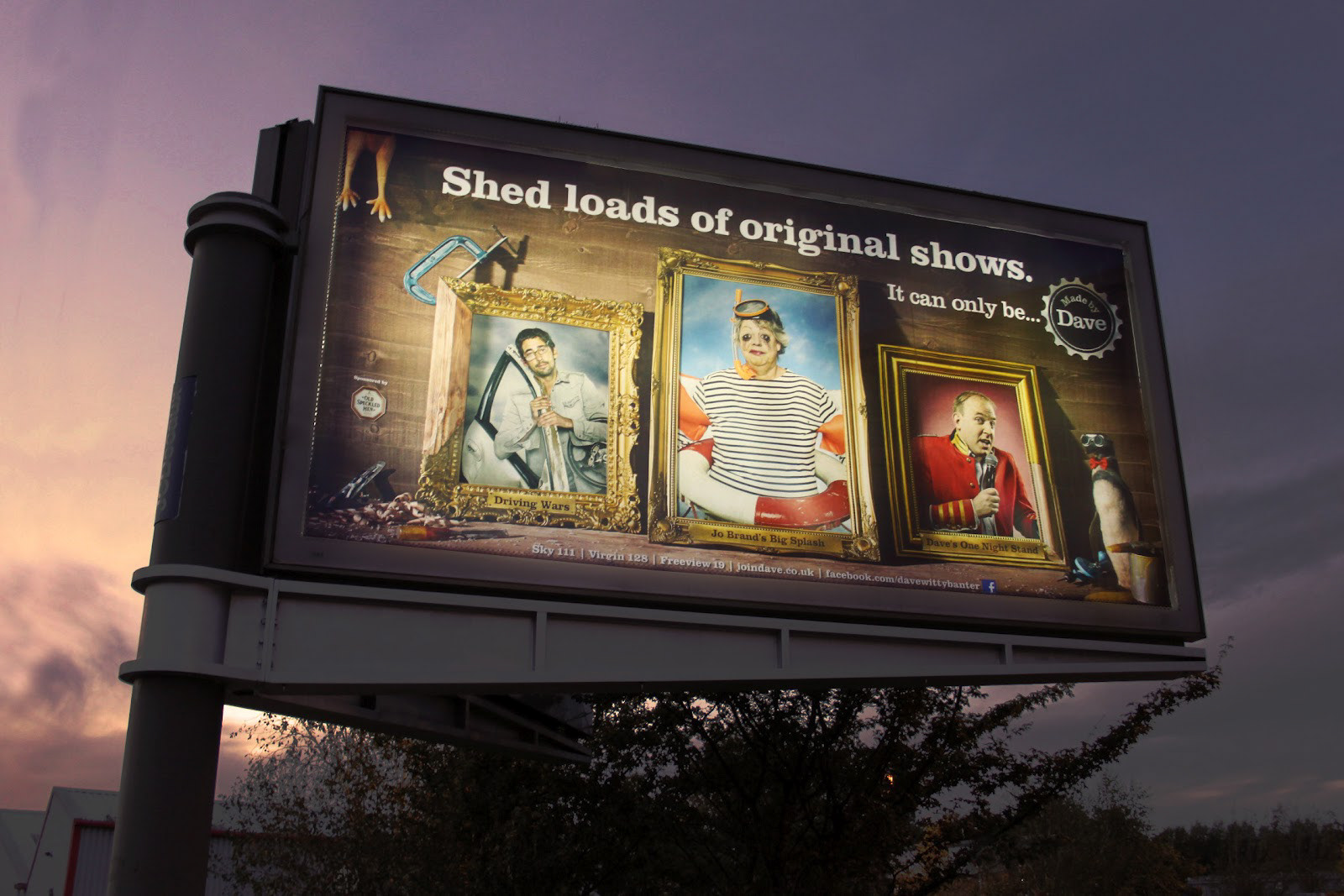 A series of 48 sheet posters to promote a brand-new series of shows on the comedy TV channel Dave. Made by Dave in the shed.
