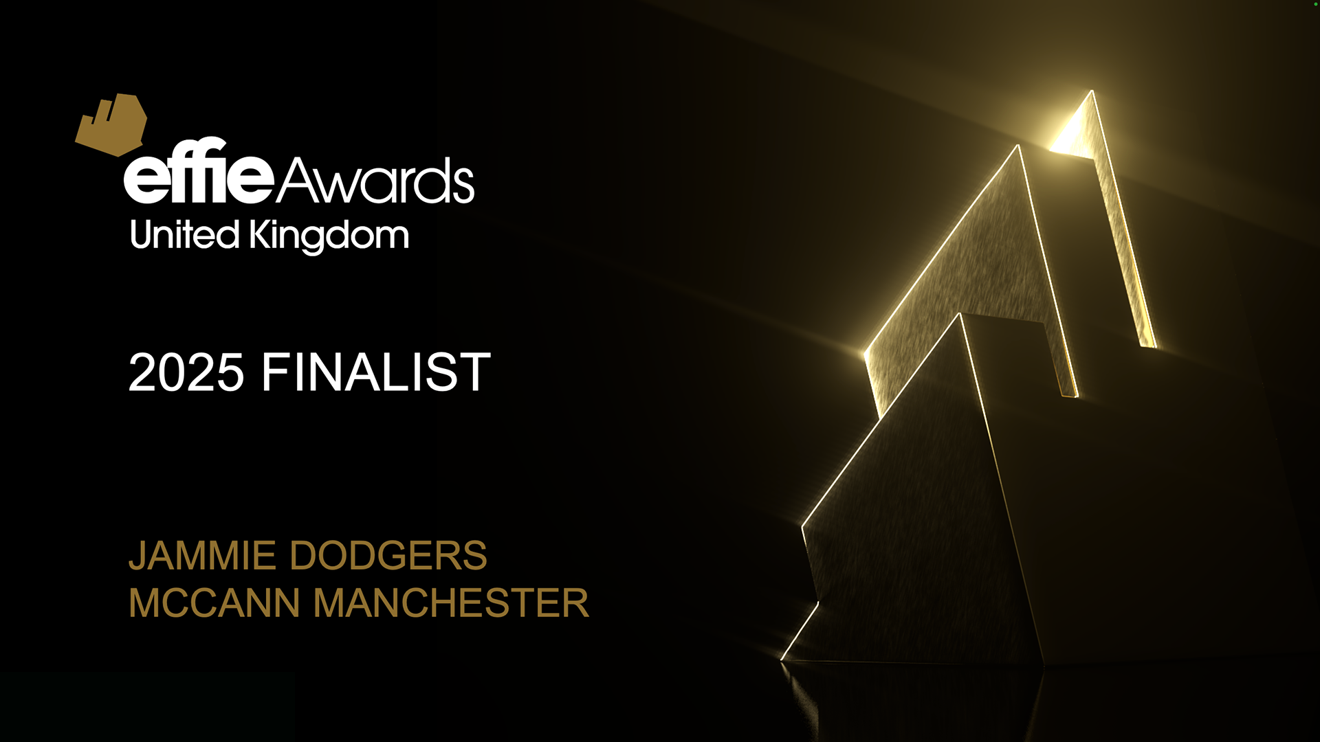 After 70 years as a British biscuit icon, Jammie Dodgers biscuits had a special place in the nation’s heart. But they were seen as the preserve of childhood nostalgia. To reach our audacious Y1 sales target of £6M, +20% value increase, they needed to make the brand sticky for young families. It was time to unleash Jammie Dodgers iconic and distinctive brand of mischief to bring kids and parents together, and cheekily changed perceptions of Jammie Dodgers to young at heart. The campaign revitalized the Jammie Dodgers brand from misty-eyed to mischievous, and pumped value sales by 28% in Y1. It's also a finalist at the 2025 effie Awards.